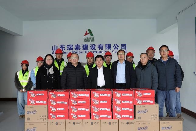 2月11日,公司黨委副書記、總經(jīng)理、董事劉漢興一行到瑞泰公司S236辛濱線濱城繞城段改建工程施工一標(biāo)段項(xiàng)目經(jīng)理部慰問一線員工。公司黨委委員、工會(huì)主席、職工董事于光,黨委委員、副總經(jīng)理、安全總監(jiān)張繼軍陪同。